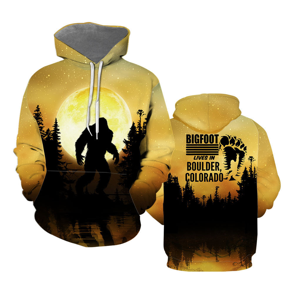 Bigfoot Hoodie Bigfoot Lives In Boulder Colorado Hoodie Yellow Unisex