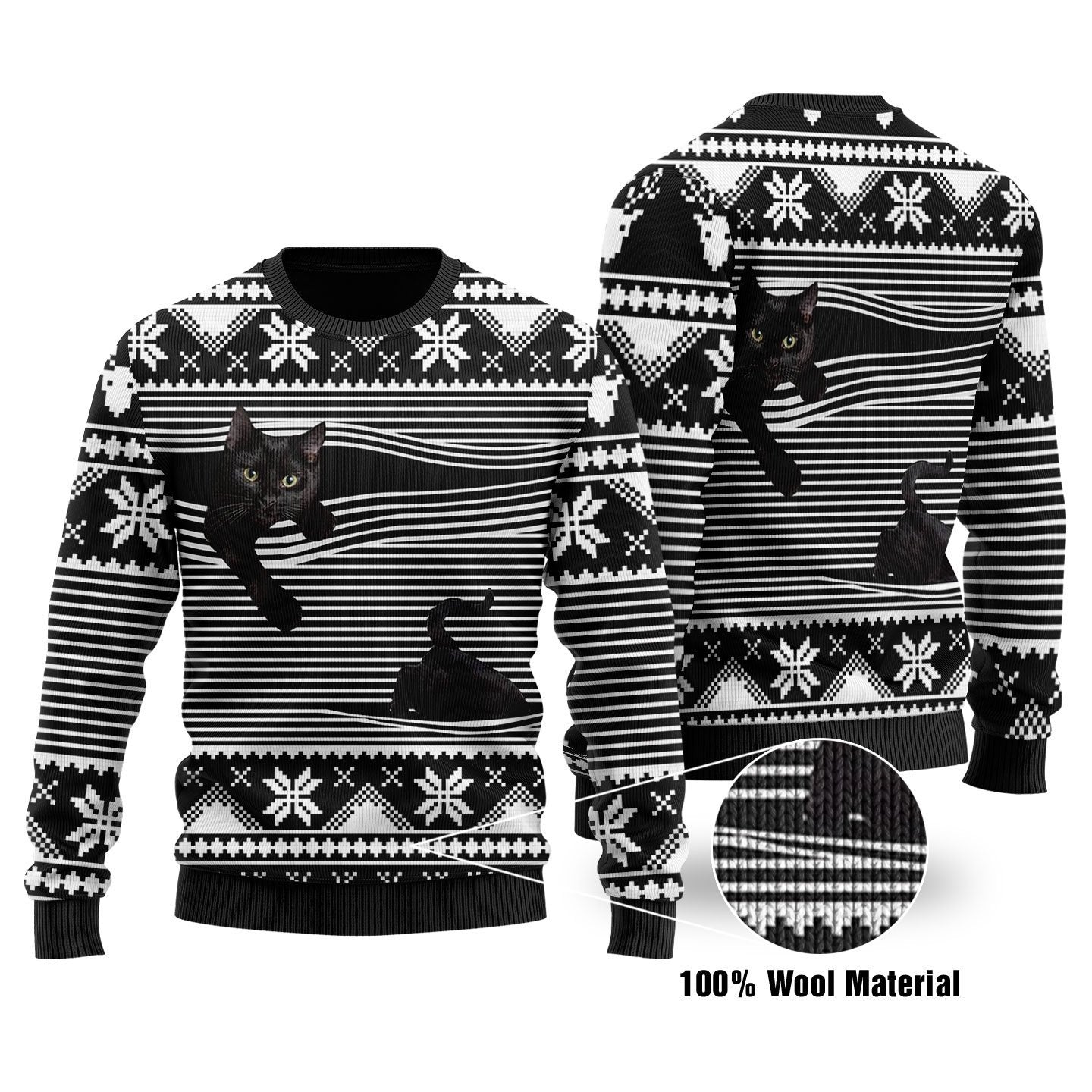 Gifury Cat Christmas Sweatshirt Black Cat Christmas Pattern Black White 3d Ugly Sweatshirt Cat Ugly Sweatshirt