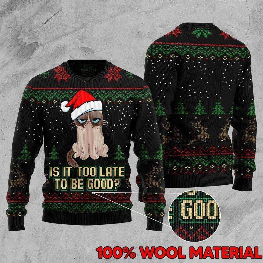 Gifury Cat Christmas Sweatshirt Cat Is It Too Late To Be Good Black Ugly Sweatshirt Cat Ugly Sweatshirt