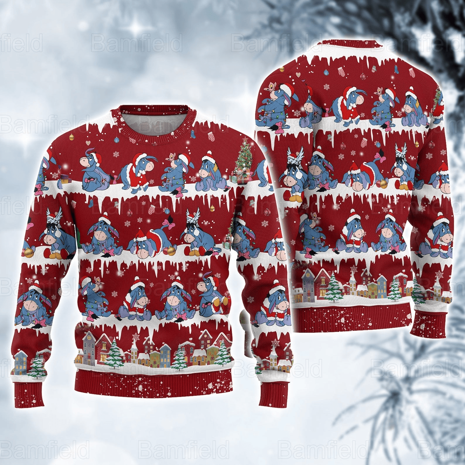 Winnie The Pooh Sweatshirt Eeyore Winter Season Pattern Sweatshirt Red Unisex