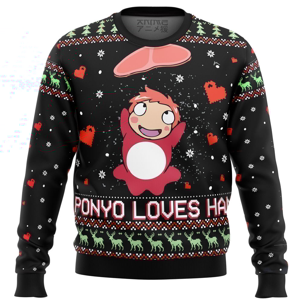 Ghibli Ponyo Loves Ham Ugly Christmas Sweater