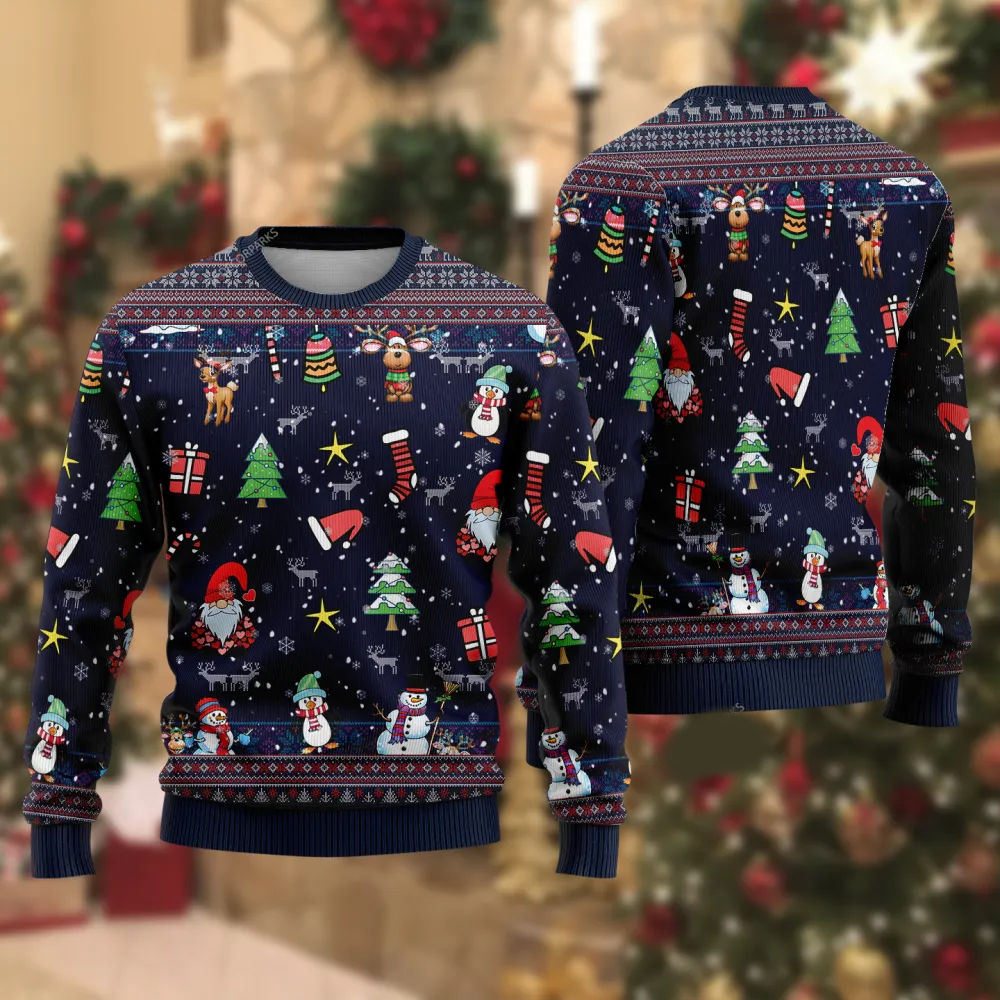 Gnome Sweatshirt Gnomes Snowman Reindeer Christmas Tree Sweatshirt Black Unisex
