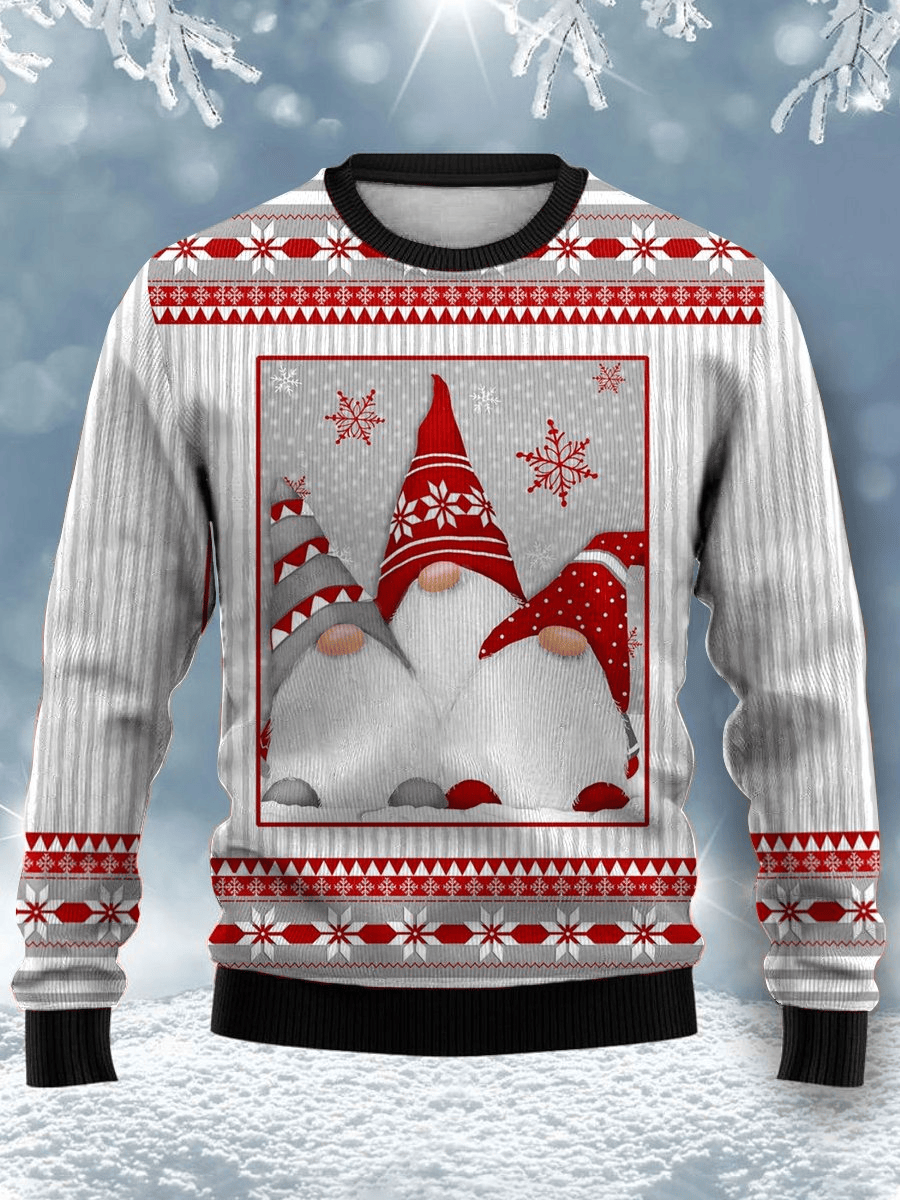 Gnome Sweatshirt Gnomes Vintage Snowflakes Pattern Sweatshirt Gray Unisex