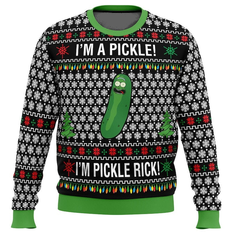 Rick And Morty Sweatshirt I'm Pickle Rick Snowflakes Pattern Sweatshirt Black White Unisex Adults