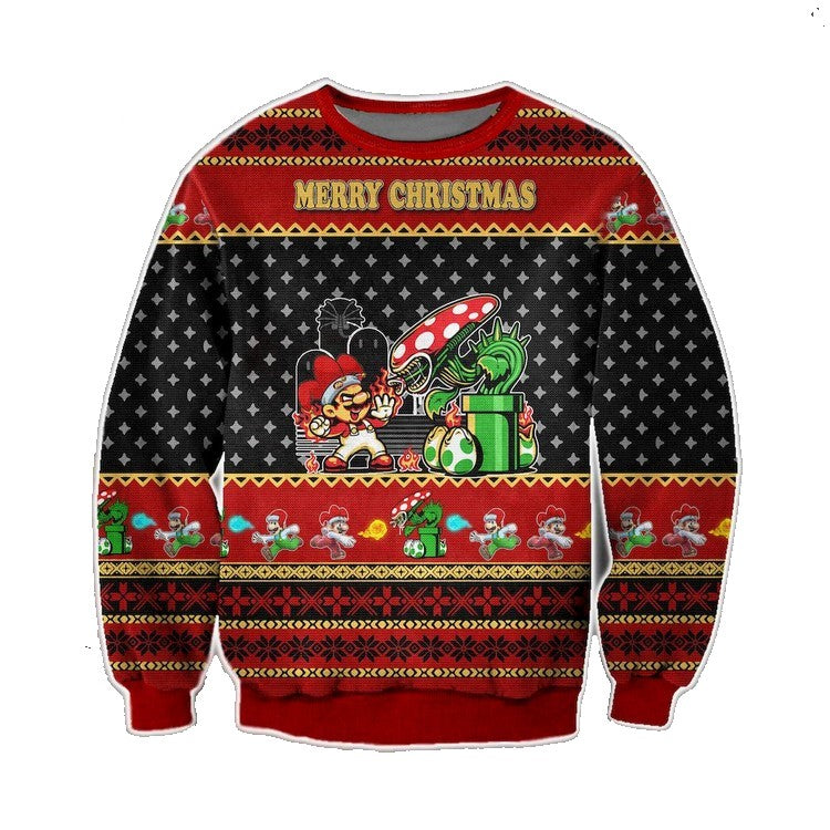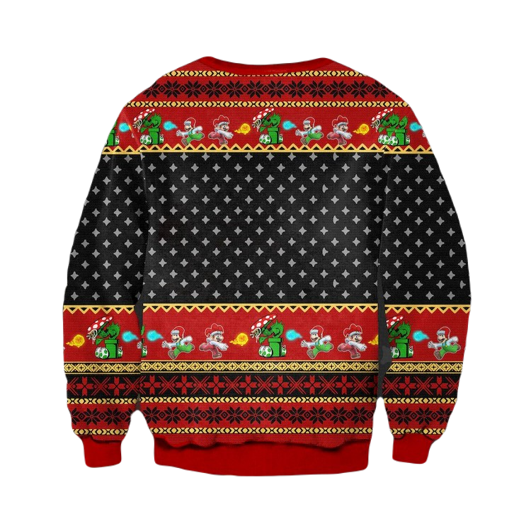 Mario Sweatshirt Mario Fights Xenomorph Merry Christmas Sweatshirt Red Black Unisex