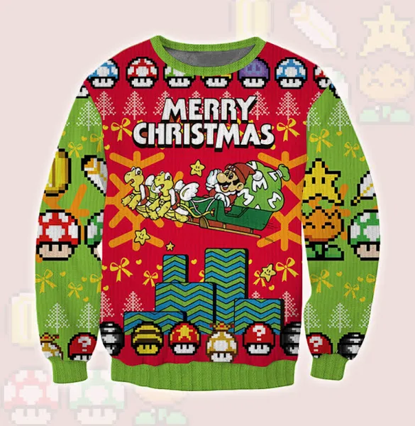 Mario Sweatshirt Marry Christmas Santa Mario Sweatshirt Red Green Unisex