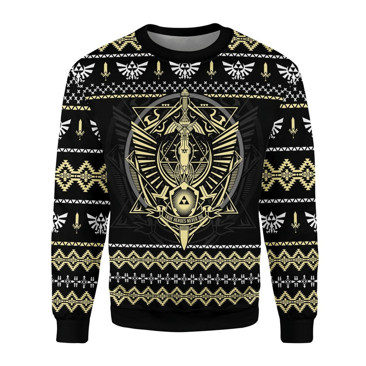 The Legend Of Zelda Sweatshirt Master Sword True Hero Never Die Sweatshirt Black Yellow Unisex