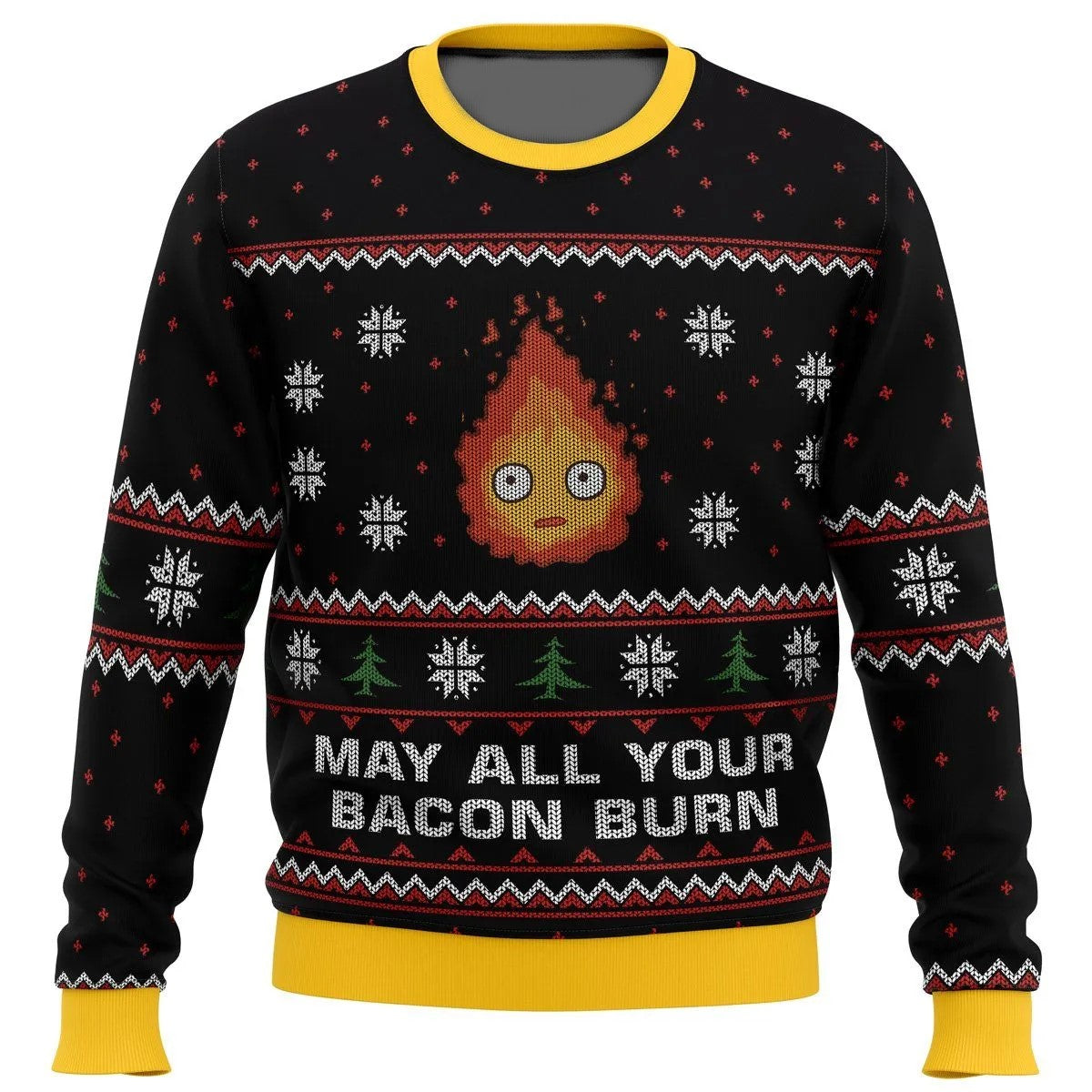 SGhibli Sweatshirt May All Your Bacon Burn Calcifer Sweatshirt Black Unisex