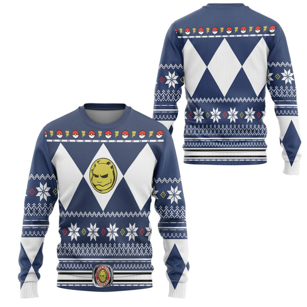 Power Rangers Sweatshirt Mighty Morphin Blue Power Ranger x Pokemon Blastoise Sweatshirt Unisex Adults