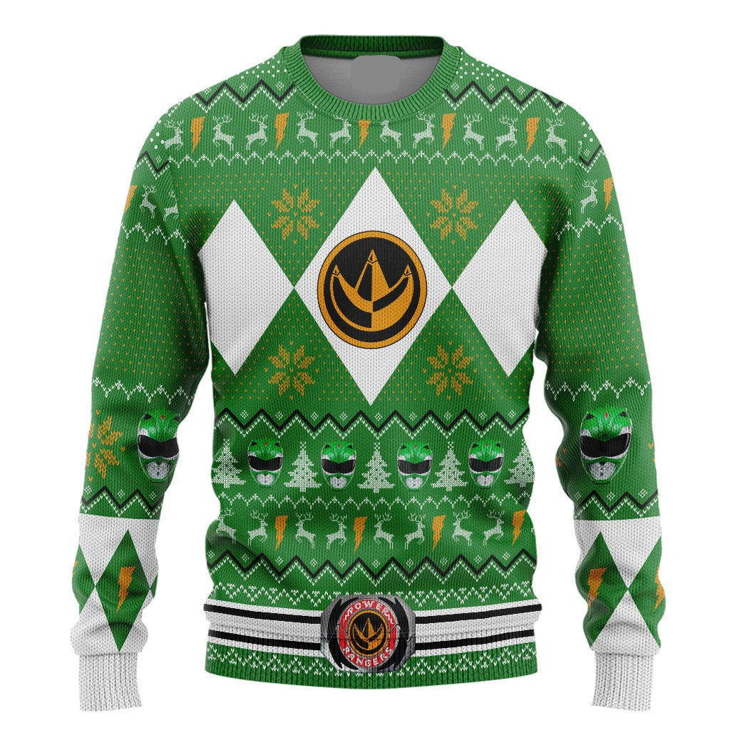 Power Rangers Sweatshirt Mighty Morphin Green Ranger Helmet Pattern Christmas Sweatshirt Unisex Adults