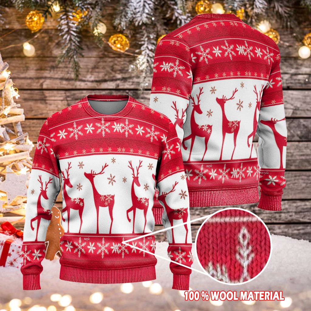 Gifury Reindeer Sweatshirt Reindeer Christmas Snowflakes Pattern Red And White Ugly Sweatshirt Reindeer Ugly Sweatshirt