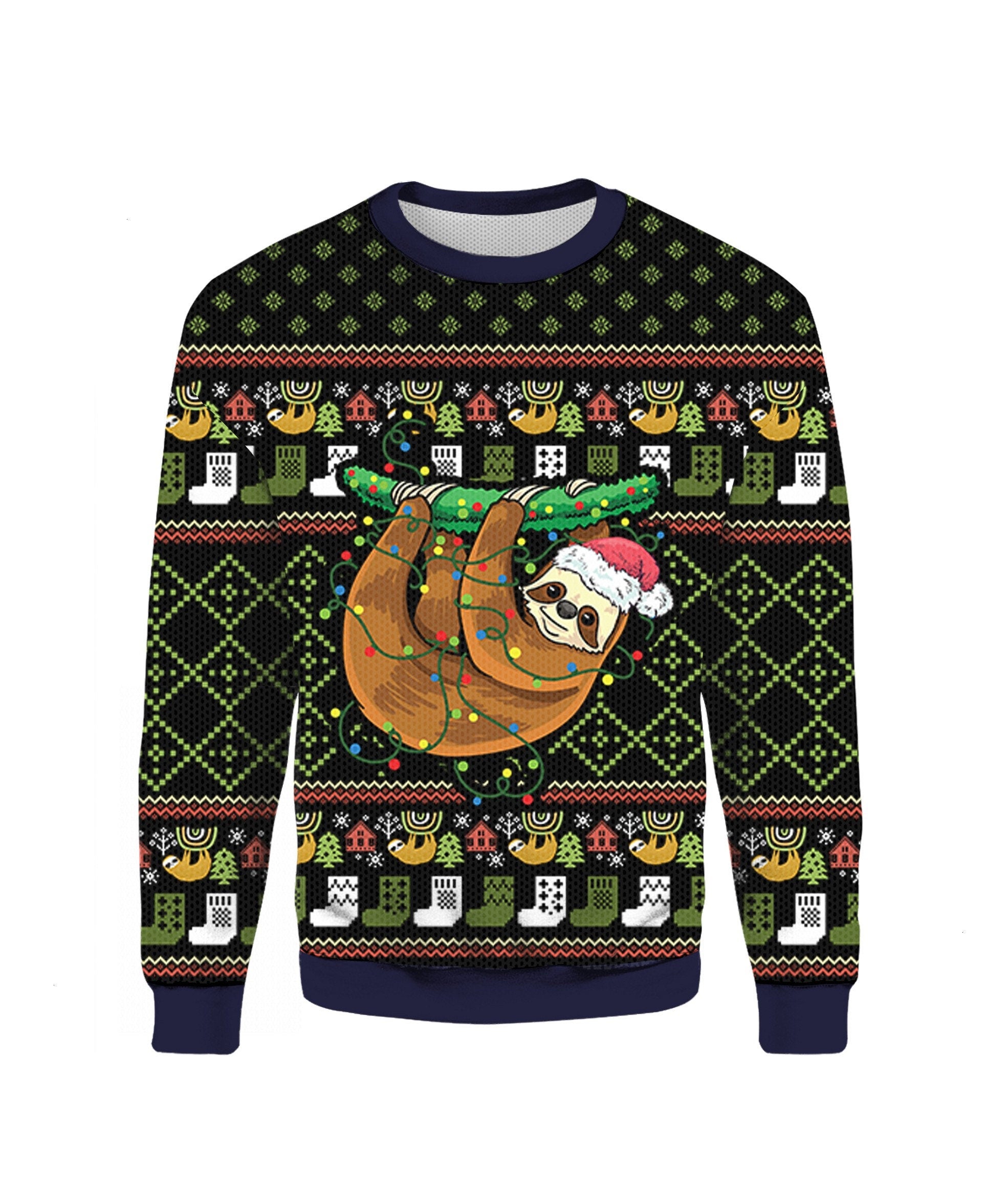 Sloth Sweatshirt Sloth Lights Christmas Pattern Sweatshirt Black Green Unisex