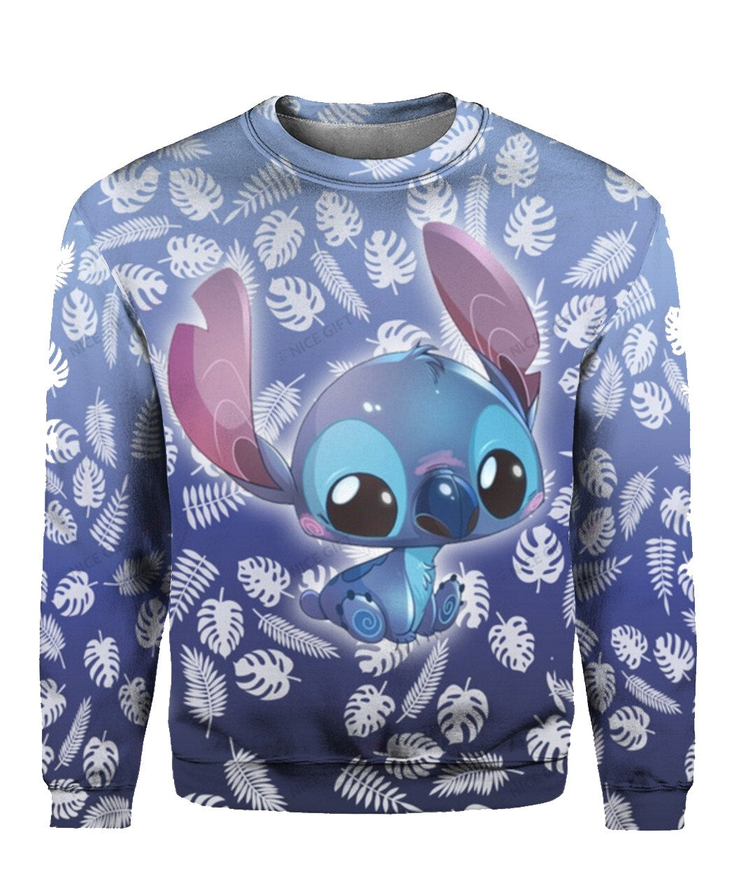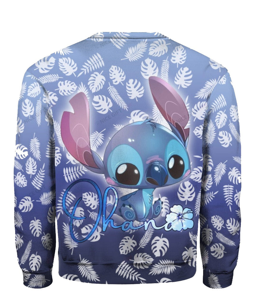 DN Stitch Sweatshirt Stitch Ohana Tropical Leaf Pattern Sweatshirt Blue Unisex