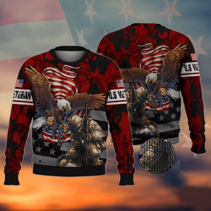 Veteran Sweatshirt Veteran Soilder Bald Eagle Graphic Sweatshirt Red Unisex