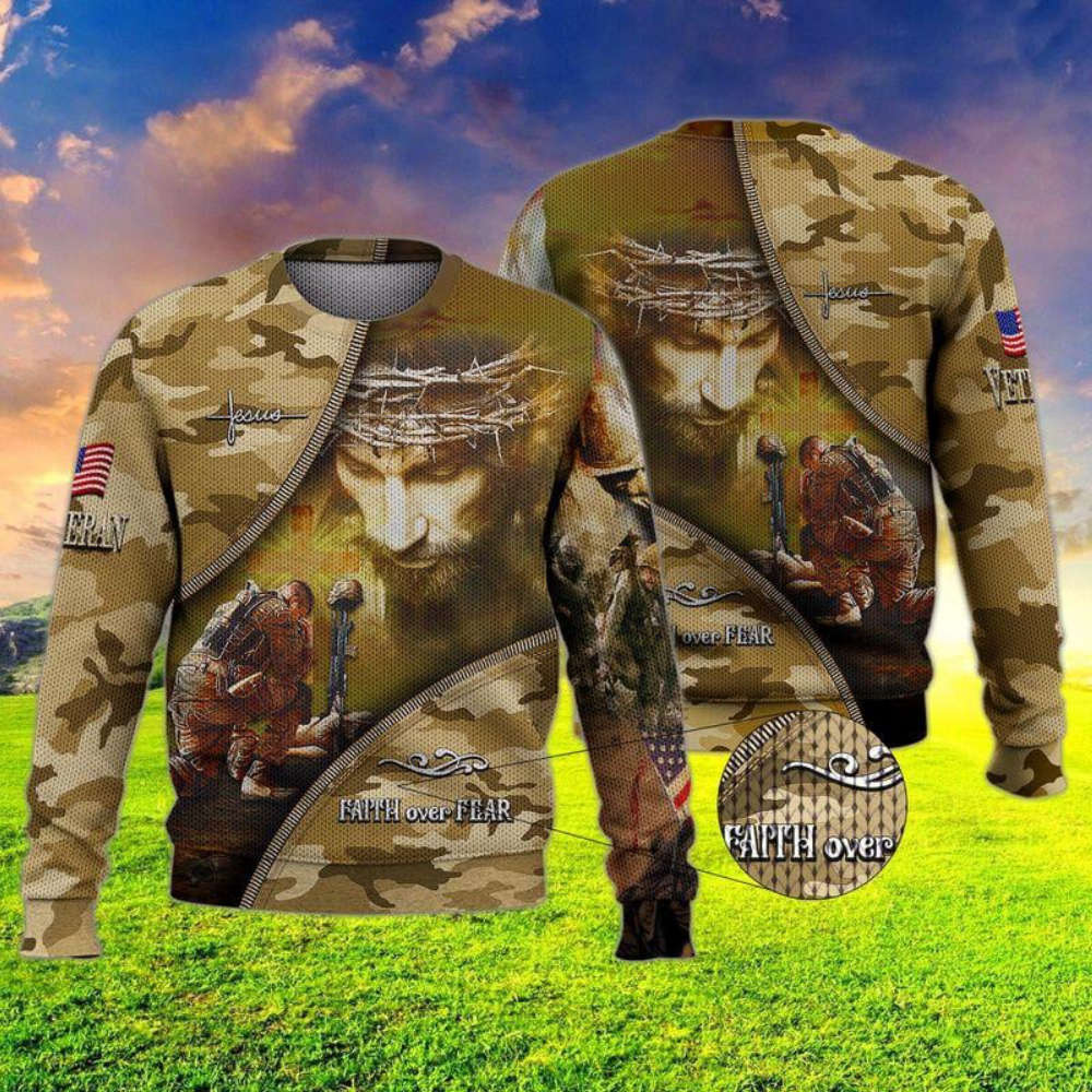 Veteran Sweatshirt Veteran Faith Over Fear Sweatshirt Brown Unisex