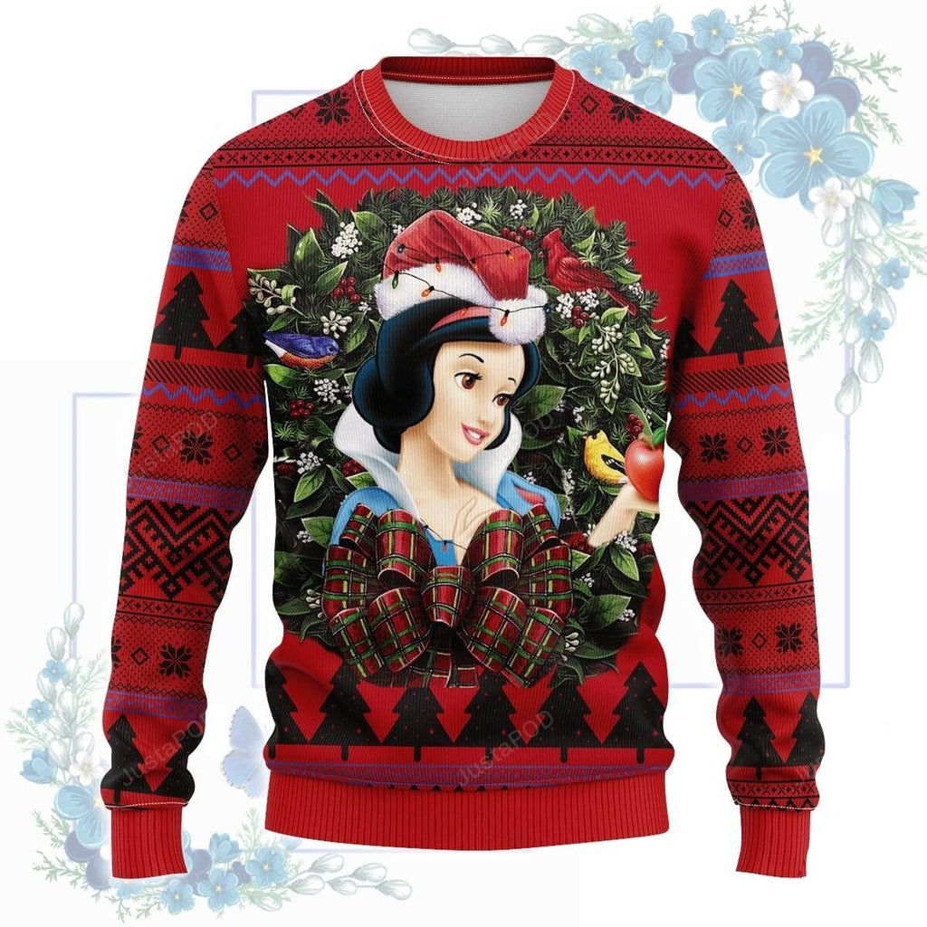 Snow White Sweatshirt Snow White Christmas Wreath Sweatshirt Red Unisex