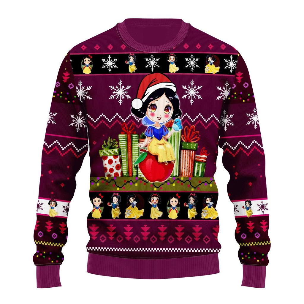 Snow White Sweatshirt Snow White Chibi Christmas Pattern Sweatshirt Dark Purple Unisex