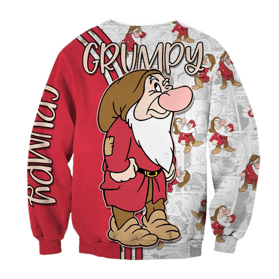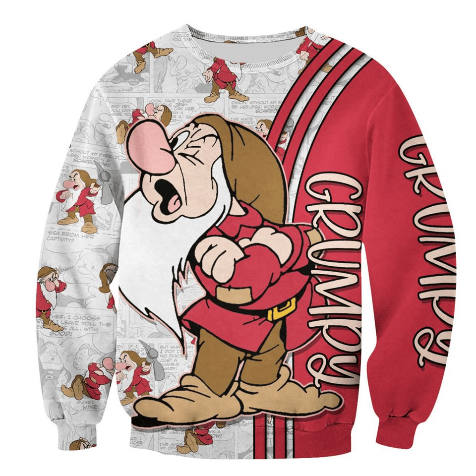 Snow White Sweatshirt Snow White Grumpy Dwarf Comic Sweatshirt Red White Unisex