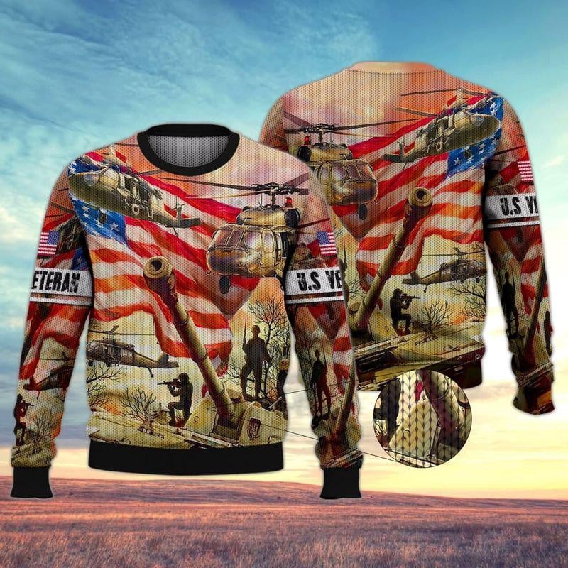 Veteran Sweatshirt US Veteran War Tank Graphic Sweatshirt Colorful Unisex