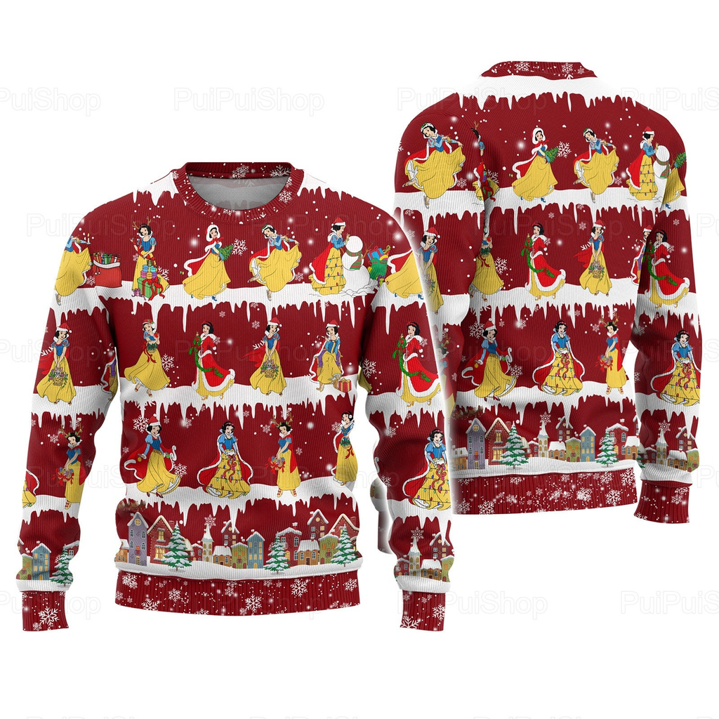 Snow White Sweatshirt Snow White Winter Season Pattern Sweatshirt Red Unisex