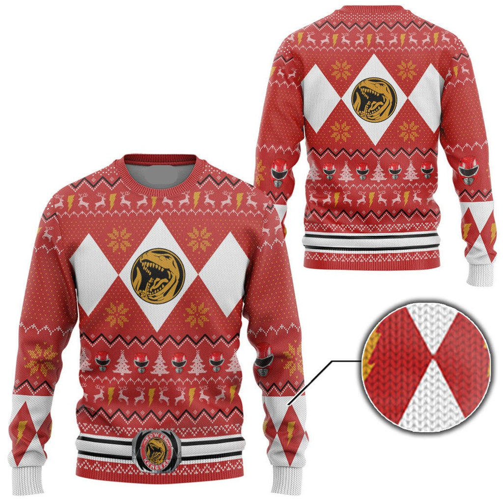 Power Rangers Sweatshirt Mighty Morphin Red Ranger Helmet Pattern Christmas Sweatshirt Unisex Adults